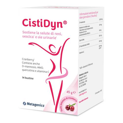 La formulazione di CistiDyn è stata ottimizzata con l’aggiunta di 2'-fucosillattosio (HMO-brevetto Care4U) e di un elevato dosaggio di D-mannosio. CistiDyn contiene anche quercetina e vitamina C.